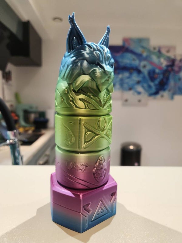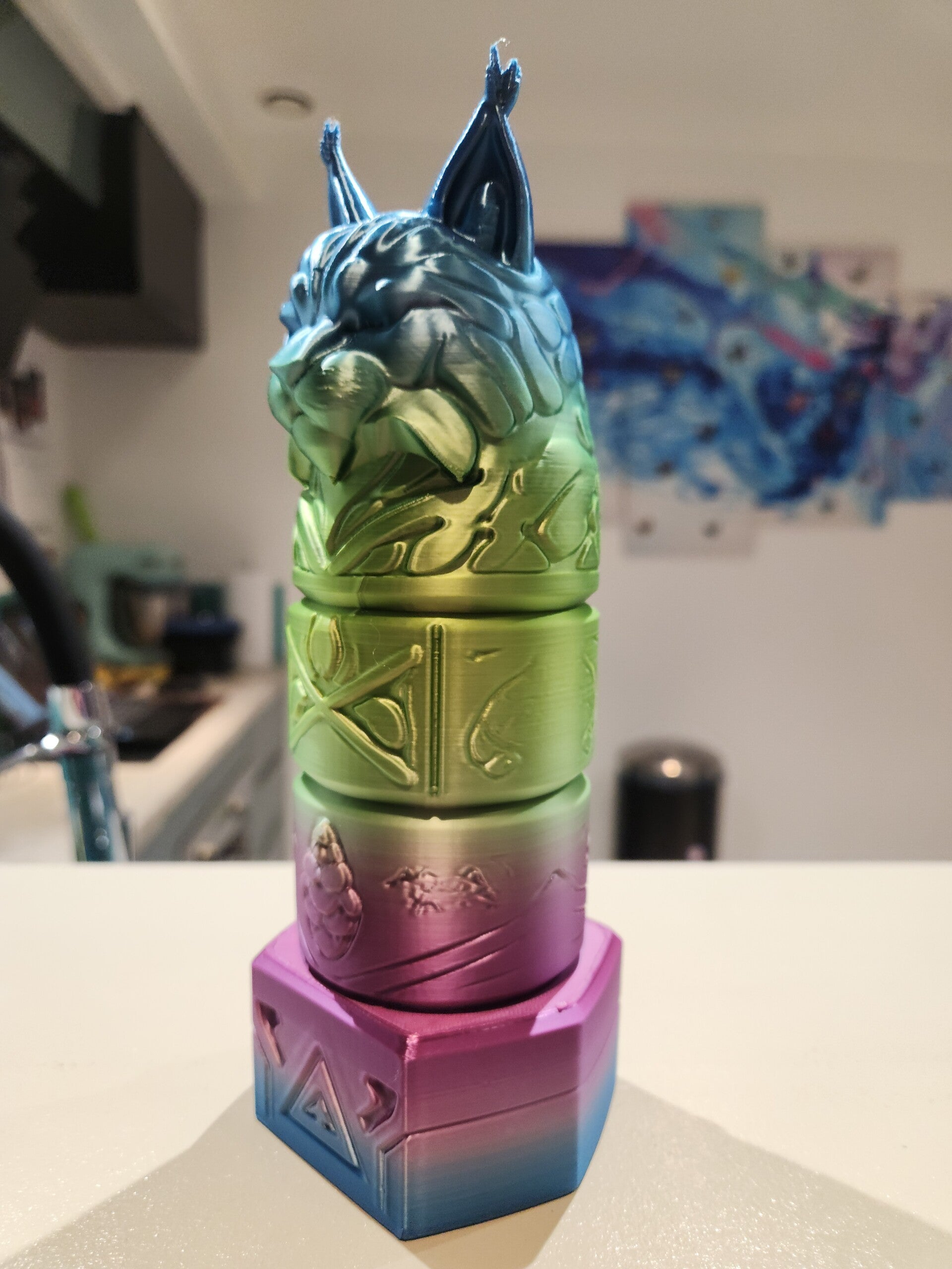 Le Totem Lynx fait partie d’une collection d’animaux totems pensée pour allier esthétique, simplicité d’impression et identité forte.