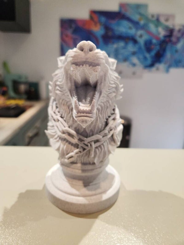 Plongez dans la mythologie nordique avec ce buste détaillé de Fenrir, l’imposant loup monstrueux symbole de chaos et de puissance. Ce modèle a été conçu pour offrir un rendu élégant et réaliste, idéal pour la décoration, les collectionneurs ou les amateurs d’art antique.
