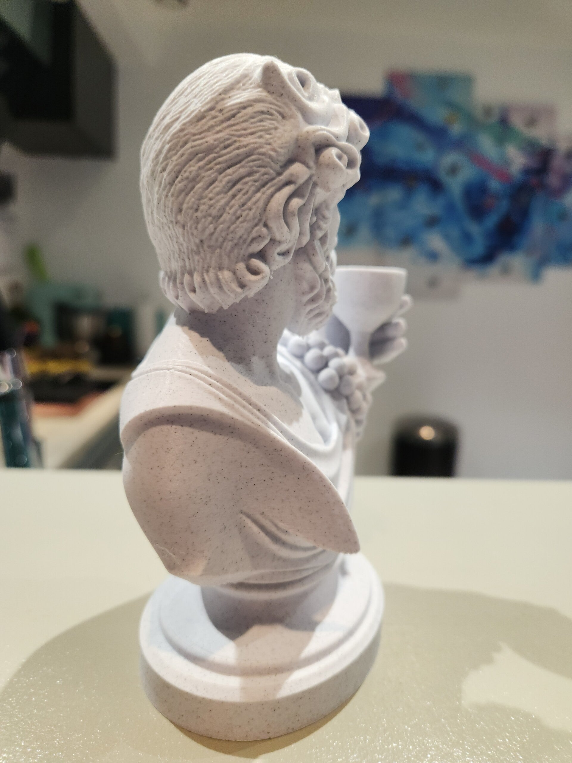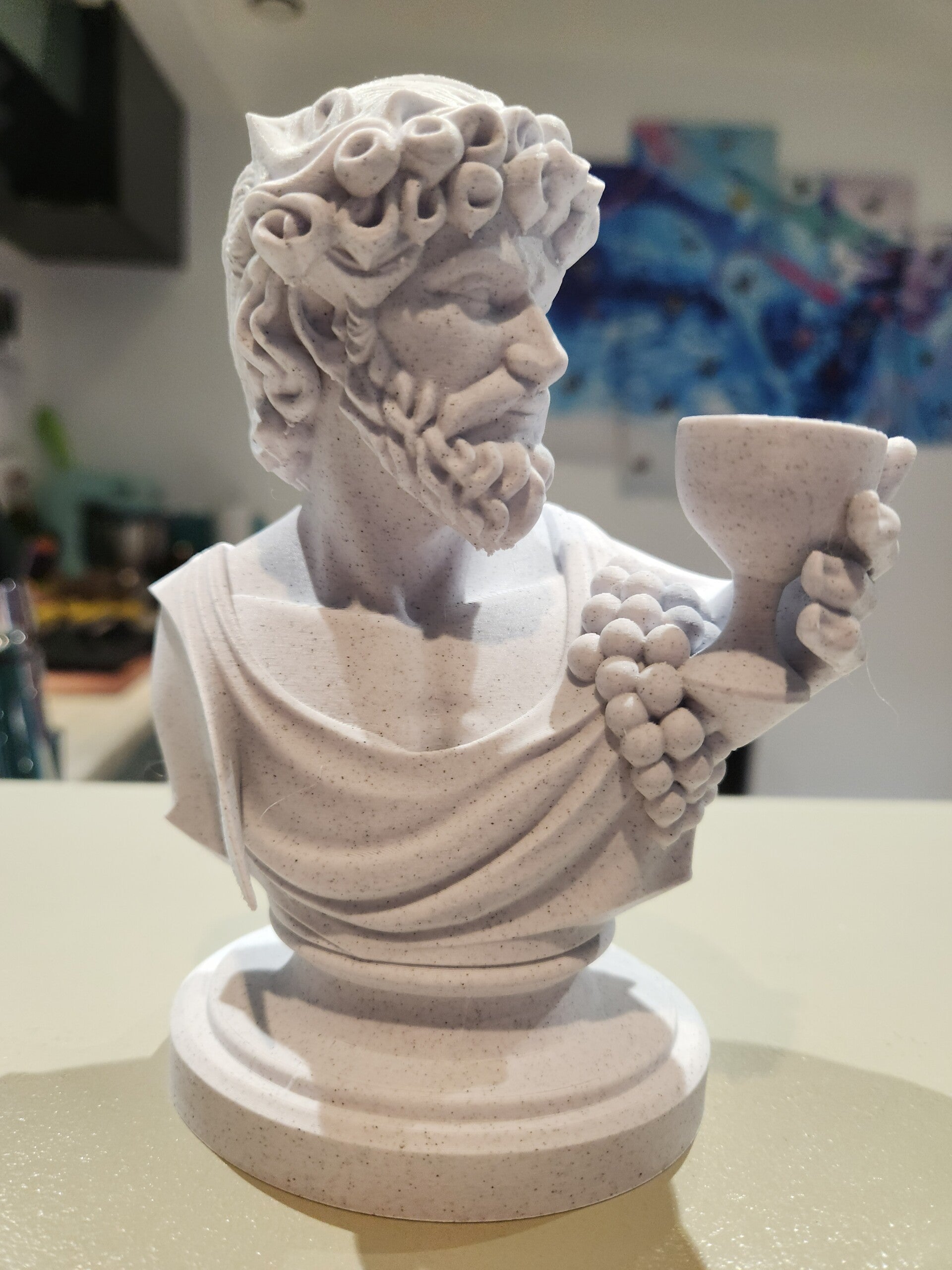 Plongez dans la mythologie grecque avec ce buste détaillé de Dionysos, dieu du vin, de la fête et de l’extase. Ce modèle a été conçu pour offrir un rendu élégant et réaliste, idéal pour la décoration, les collectionneurs ou les amateurs d’art antique.