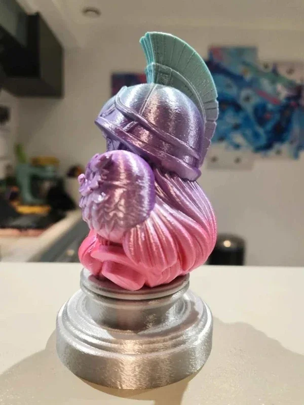 Plongez dans la mythologie grecque avec ce buste détaillé de Athéna en version chibi, déesse de la sagesse et de la stratégie. Ce modèle a été conçu pour offrir un rendu élégant, original et coloré, idéal pour la décoration, les collectionneurs ou les amateurs d’art et de mythologie antique.