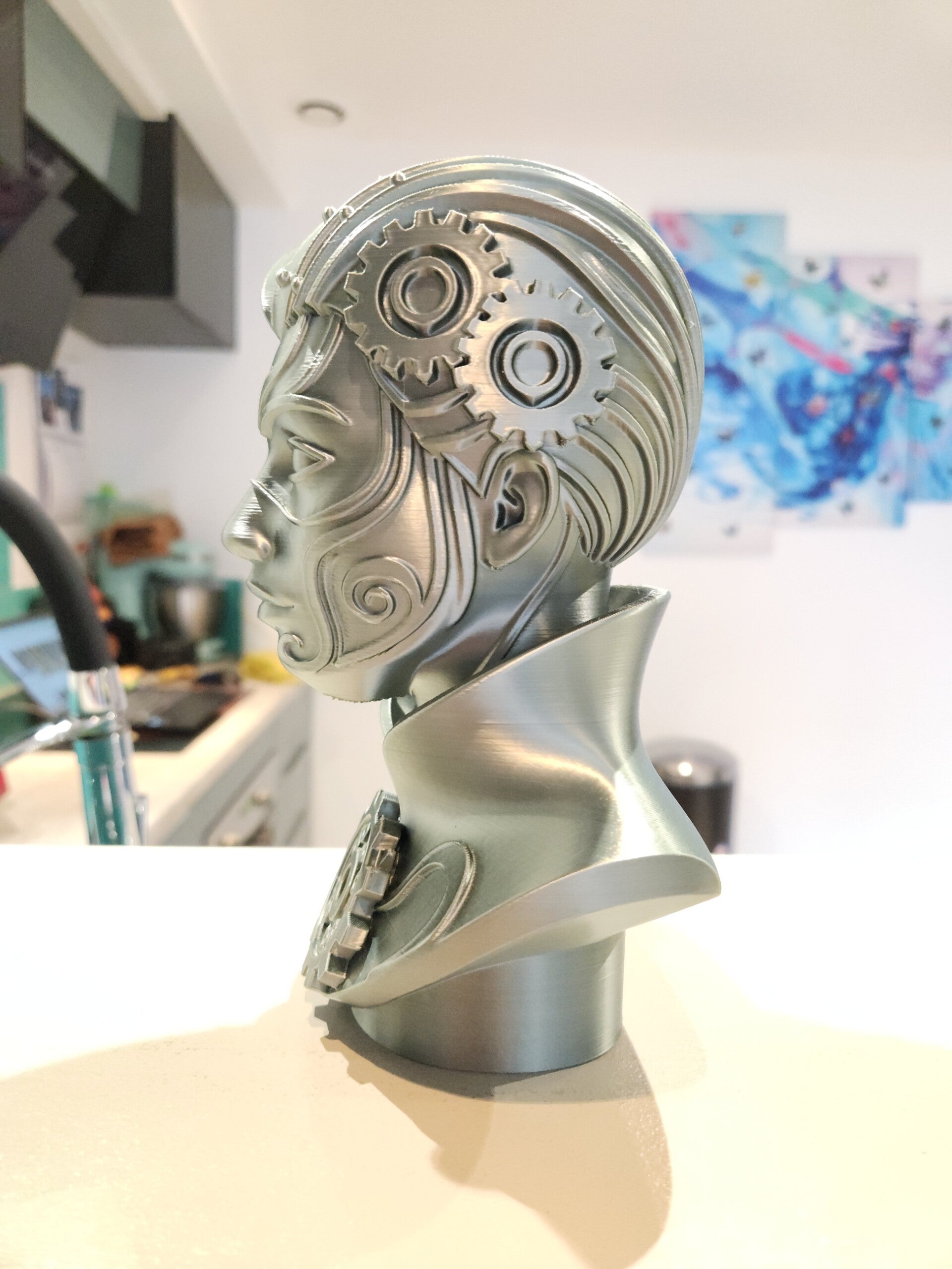 Buste Femme Steampunk 20cm – Sculpture Décorative Rétro Futuriste