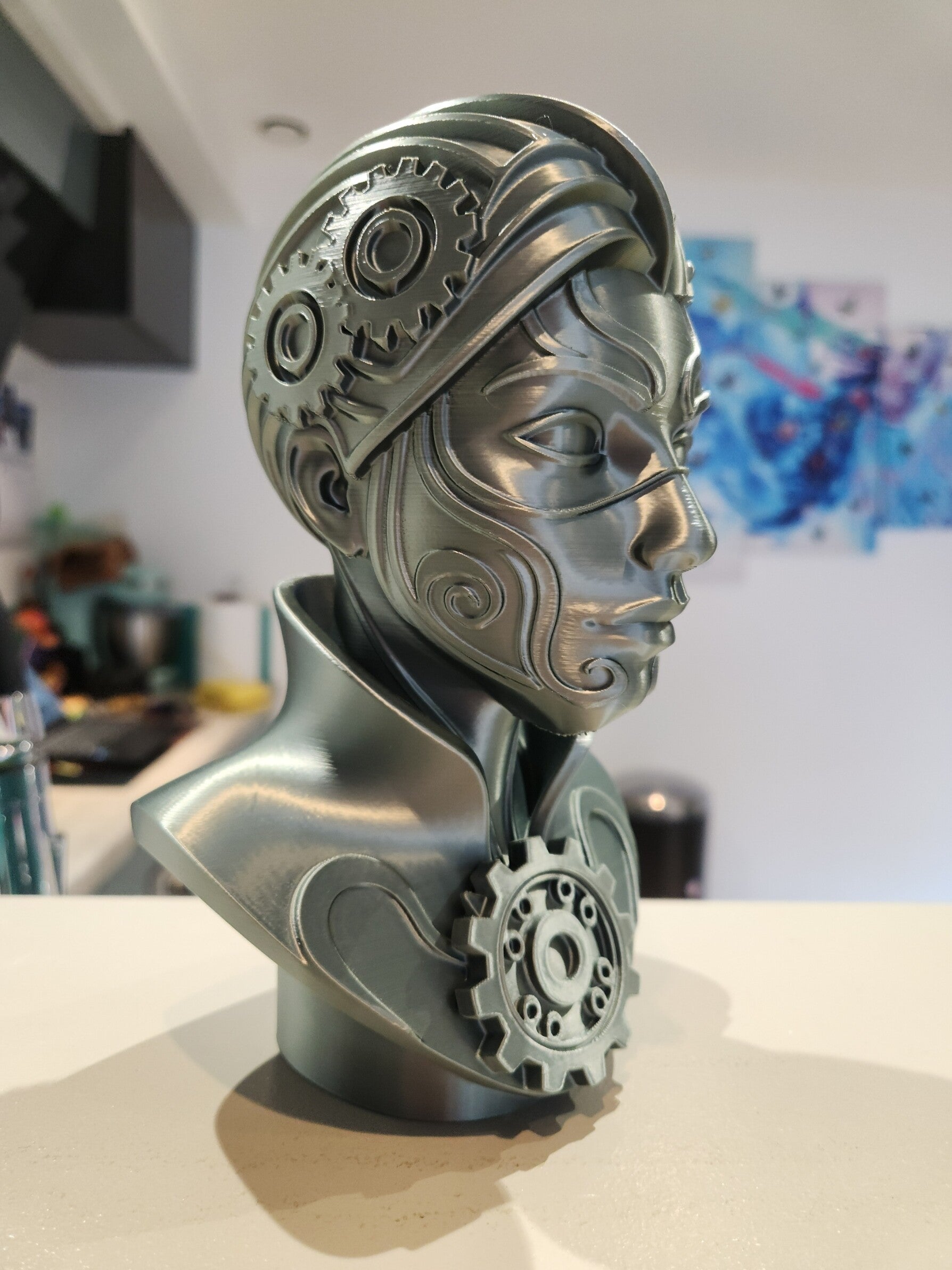 Plongez dans l’univers rétro-futuriste du steampunk avec ce buste détaillé de femme mécanique, mêlant élégance et engrenages dans un style unique inspiré de l’ère industrielle. Ce modèle a été conçu pour offrir un rendu élégant et réaliste, idéal pour la décoration, les collectionneurs ou les amateurs d’esthétique vintage et futuriste.